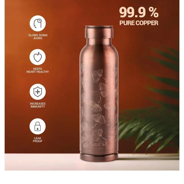 MILTON Copper Swasth Water Bottle 940 ml Copper Petals